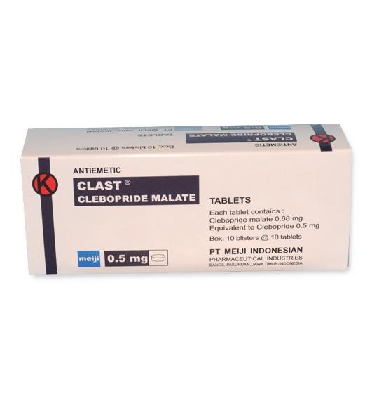 Clebopride Malate adalah obat yang bekerja menghambat penempelan hormon dopamin. Bersifat antimual dan antimuntah.
