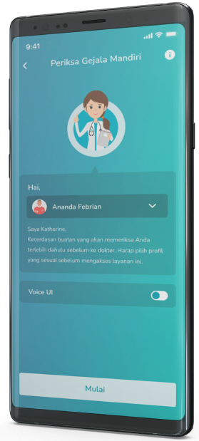 Katherine adalah asisten kesehatan virtual berbasis AI yang dapat membantu memeriksa gejala kesehatan Anda. Katherine akan memberikan informasi kemungkinan diagnosis, penanganan awal, mengarahkan Anda untuk menghubungi dokter yang tepat, dan merekomendasikan Anda untuk mengunjungi rumah sakit terdekat jika kondisi Anda memerlukan pemeriksaan lanjutan. Katherine dapat diakses melalui layanan utama kami, yaitu Periksa Gejala Mandiri.
